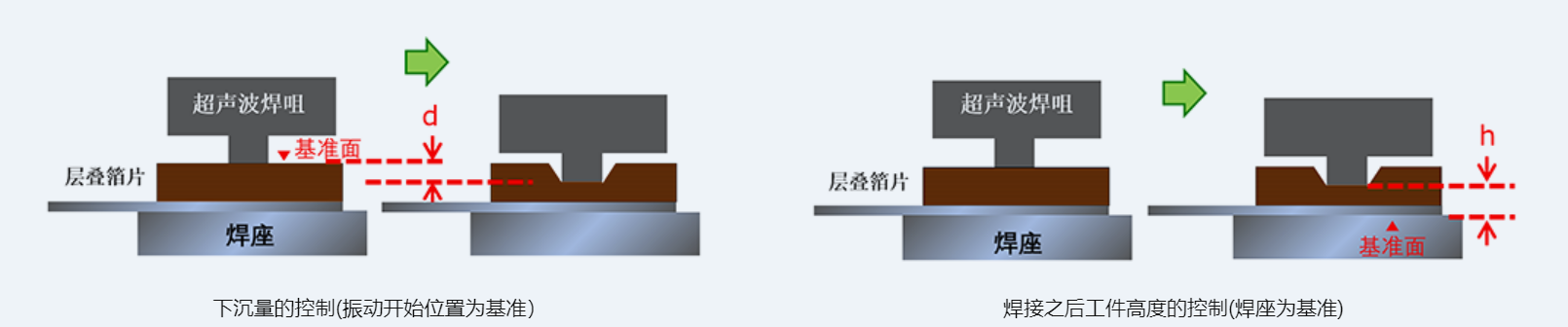 该位移功能提供了两种操作模式:一是基于特定/位移的压痕控/制,二是依据完成厚度设定的高度位移,为用户提供了灵活的选择以适应不同焊接需求。此外,设备内置了分辨率为1微米的线性标尺,确保了微米级的调整,进一步提升了焊接的精确性和可靠性。