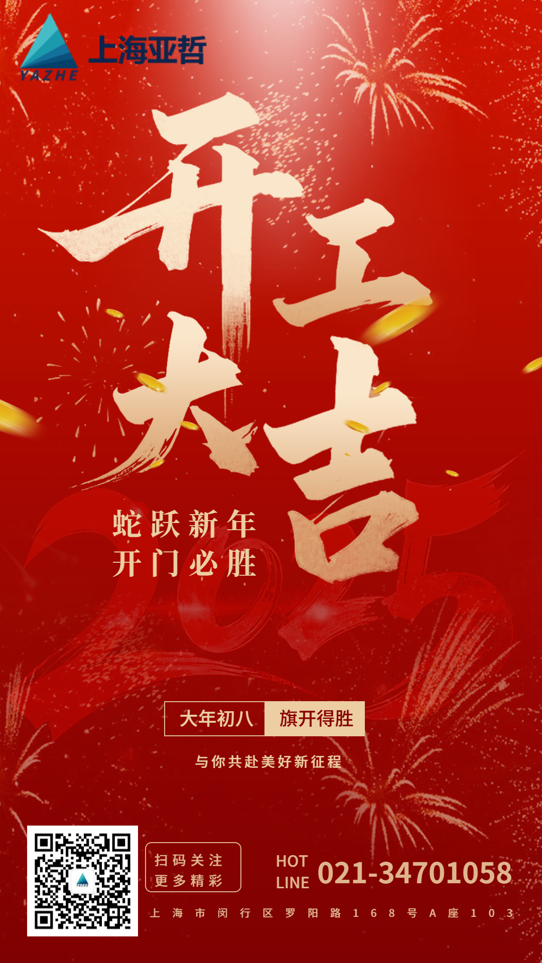 蛇年新气象,亚哲新征程!我们坚信,在全体员工的共同努力下,在广大客户和合作伙伴的鼎力支持下,上海亚哲电子科技有限公司一定能够在新的一年里再创佳绩,再攀高峰!