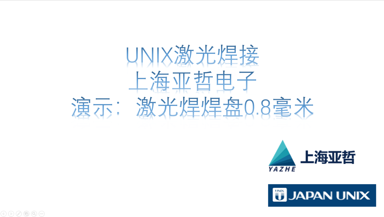 上海亚哲电子代理日本武藏点胶机、UNIX焊锡机、AVIO焊接经验丰富。视频中是UNIX新激光焊接的解决方法,有产品工艺需求的客户欢迎拿样品来我司实验室测试。